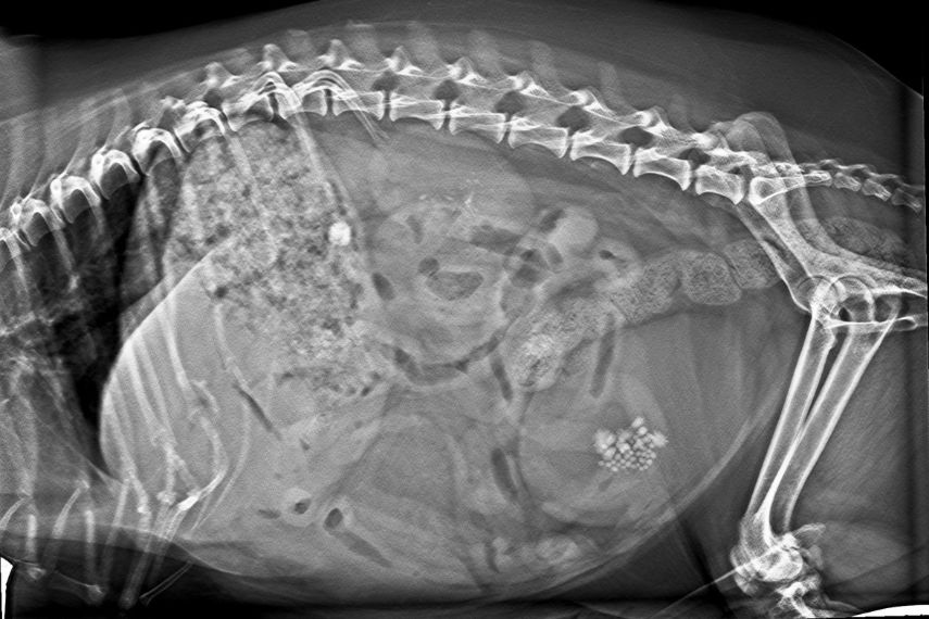 Klinische Untersuchung: Oft zeigen die Tiere keine oder nur unspezifische Symptome (zB Bauchschmerzen).